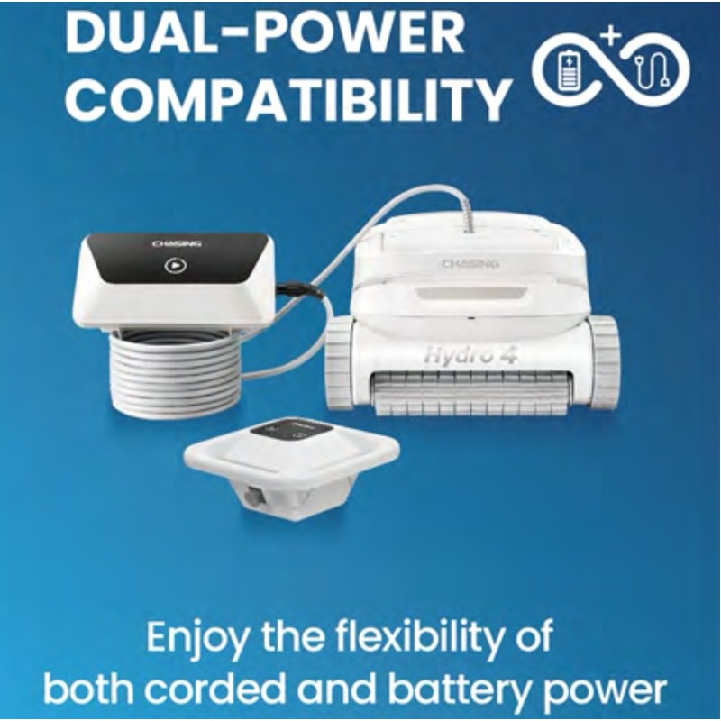 • Flexible Stromversorgungsoptionen: kabellos für einfaches, verwicklungsfreies Reinigen; Für Dauerbetrieb – ideal für mittelgroße bis große Pools.