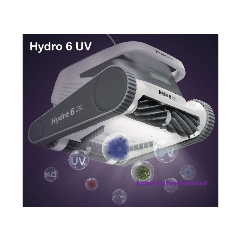 Für größere Pools: Mit seiner integrierten UV-bakteriziden Lampe erweitert der Hydro 6UV die anderen Desinfektionsprodukte und -systeme Ihres Pools deutlich. Mit seinem 25 m langen Kabel, zahlreichen programmierbaren Funktionen und der Echtzeit-Fernsteuerung per Bluetooth ist der Hydro 6UV wohl der funktionsreichste und sparsamste Roboter seiner Klasse.