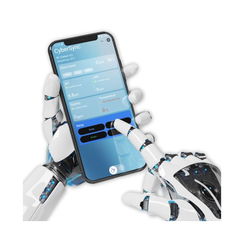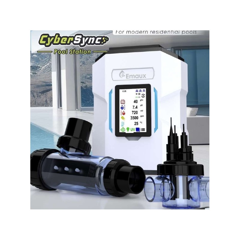 The CyberSync Pool Station complete pool management system collects real-time swimming pool data, including pH, ORP (chlorine), salinity, and temperature, while controlling a complete range of pool equipment such as pumps, chlorinators, lighting, heating, and more. It supports scheduling and automation for effortless maintenance.