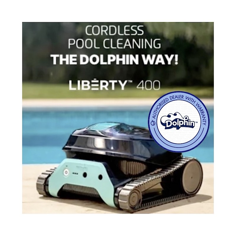 The Dolphin Liberty 400 is the world's first unique battery powered cordless robotic pool cleaner recommended for pools up to 15 m in length that are irregularly shaped and / or have in pool obstacles such as islands, pillars and bridges.