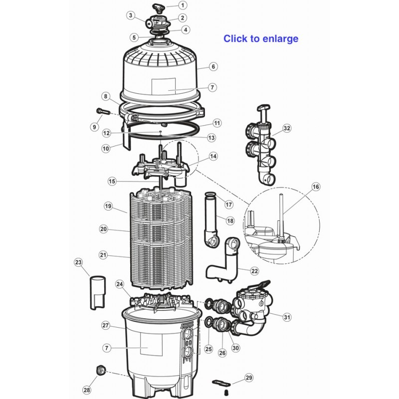 Hayward DE4820 'Pro-Grid' D.E.filter. Filter area 48 Sq.ft.(4.45 m2) Flow rate 96 gpm (22 m3/hr) 2" ports.