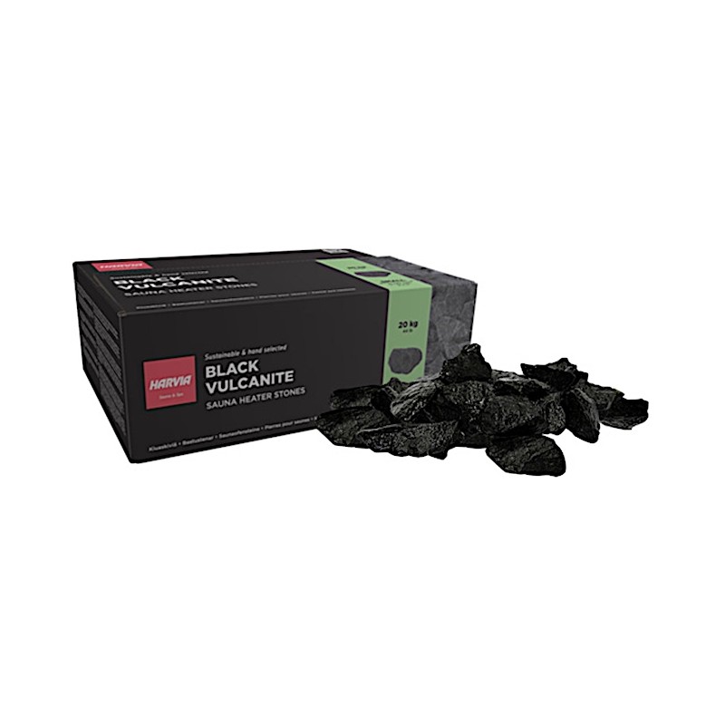 Black Vulcanite sauna heater stone is a small granular, dark grey stone. When wet, the stone shines black making it a great-looking option with selected Harvia heaters. The stone’s volcanic origins date back to ca. 2000 million years. Based on its structure and composition, vulcanite is a good choice for a sauna stone as it is hard and durable.sauna heater stone. Shines black when wet.
